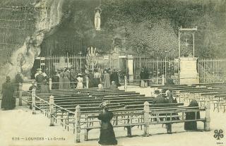 Accompanied by her mother Louise, Bernadette approached the Grotto at half past six in the morning. She paid no attention to the crowds gathered there to witness what was to occur. She knelt upon the small rock which served her as a prie-dieux, which had become her usual place, and which was always left for her, no matter how many were present. She began her Rosary.